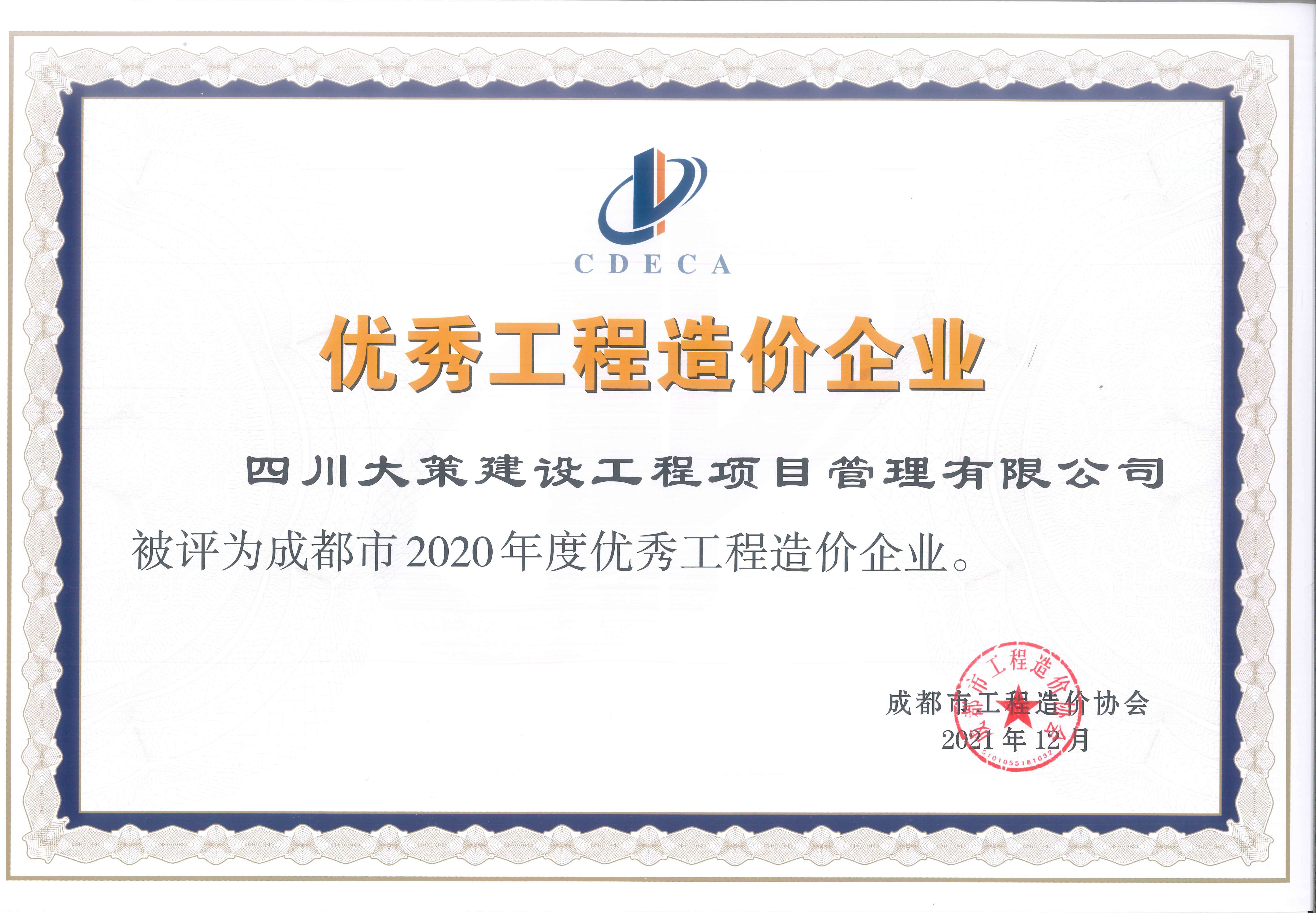 • 2020年度優(yōu)秀工程造價咨詢企業